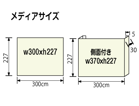 | 印刷メディアサイズ | W3000×H2270(正面)、 W3700×H2270mm(正面+側面付) |