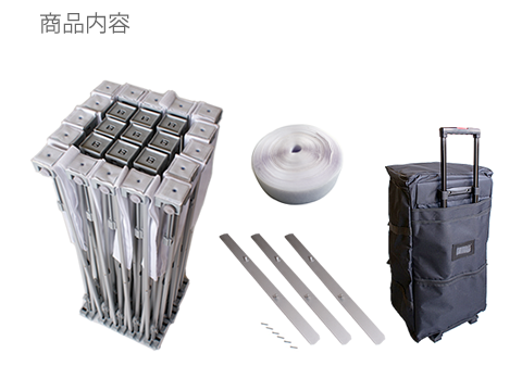 軽く、アコーディオンのように伸縮するので折りたたみ収納も楽にできます。あとは付属の収納キャリーケースに入れるだけ。 -