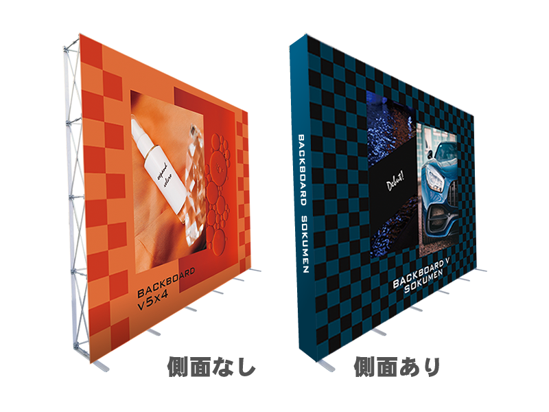 バックパネルサイズ W374cm×300cm(正面)、W444×H300cm(正面+側面付き)からお選びください。