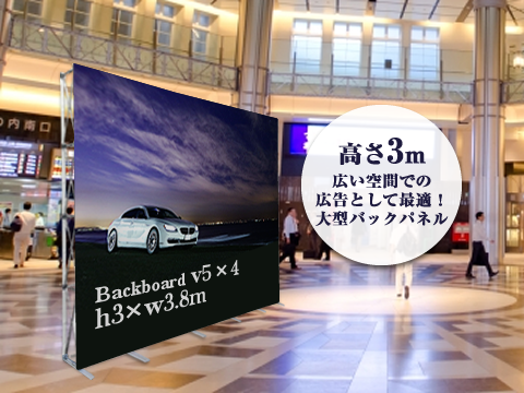 3.74×3mサイズの超大型バックパネル登場!! V5x4は圧巻の迫力で宣伝効果抜群のバックボードです。
