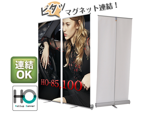 本体にマグネット内蔵で、近づけるだけでピタッとマグネット連結できる優れもの。 最大3台まで連結可能です。ロールアップHO-85,100連結 -