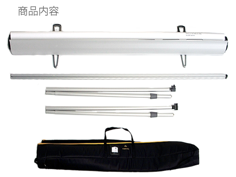 ロールアップワンタッチ商品内容:本体、上部バー、支柱2本、収納バッグ -