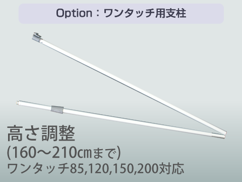 オプション:ワンタッチ用支柱 高さ調節できます。紛失、故障時にお買い求め下さい。