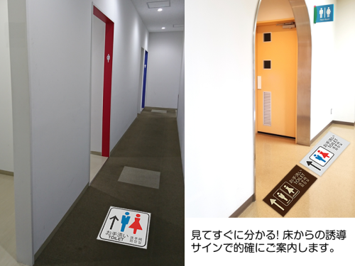 トイレ案内マット 見ればすぐに分かる、トイレの進行ルートサインとして活躍します。置くだけで完成!ラバーマット 進路を促すゴムマットは屋外で、緊急時にも役に立ちます。貼らずに置くだけで進路方向を表示できるので、方向変換も自由自在! お手軽さがラバーマットの魅力です。長方形・正方形型、使いやすいシンプルデザイン4種類をご用意いたしました。 お好みのサイズ、デザインを用途に合わせてお選びください。